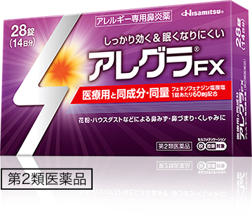 アレグラFXは、第2世代抗ヒスタミン成分「フェキソフェナジン塩酸塩※1」を配合した鼻炎薬。